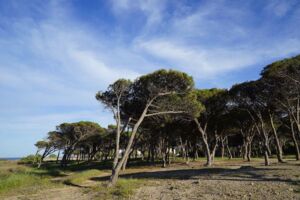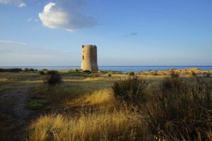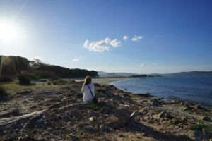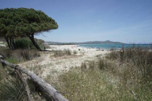 The bay of Posada is a single, large sandy bay. Approaching from the north, you first come to the mouth of the Rio di Posada. Anyone who loves unspoilt nature will be enchanted by the sight of this part of the beach. San Giovanni is about two kilometres away. In addition to the fine-grained, gently sloping sandy beach, there are a few small sections of rocky beach, in the middle of which stands a Saracen tower. Just behind it is the small yacht and fishing harbour of La Caletta. At its end, the beautiful sandy beach continues. The lively resort of Santa Lucia marks the southern end of Posada Bay. While the northern parts are largely undeveloped, parts of the beach south of La Caletta are lined with holiday homes. The sandy beach also ends in Santa Lucia. It is followed by a dense pine forest with a rocky beach, which only turns into another sandy bay at Capo Comino.