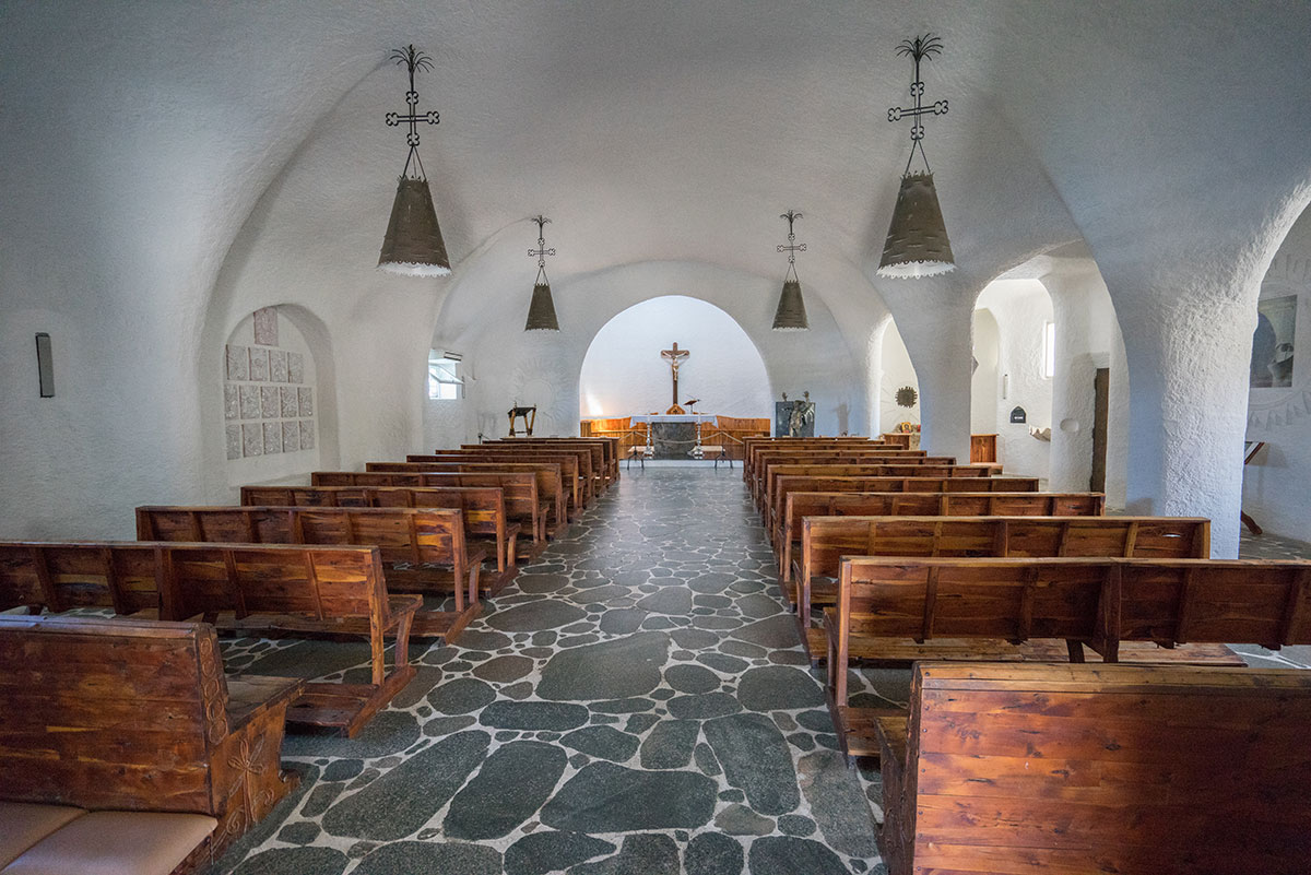 When designing Stella Maris, architect Enzo Satta took inspiration from the historic Sardinian architectural style, but varied and enriched it in many ways. The forgotten organ of a 17th-century Neapolitan master was given a new lease of life in the nave, while the crucifix dates from the 16th century and was made in Germany. The ‘Madonna Dolorosa’, on the other hand, is the work of the Spanish Mannerist El Greco. A giant Polynesian shell was anchored in the wall to serve as a holy water font.