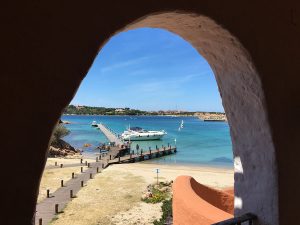 The colours of the timeless Costa Smeralda style reflect the landscape, with white and azure blue dominating the picture. Granite and ancient broom beams, as found in the surrounding area, dominate as building elements. The roofs are almost without exception covered with ancient tiles because of their inimitable antique patina. (For many Sardinians at the time, it was worthwhile re-roofing their houses in order to sell the old tiles at a high profit on the Costa Smeralda.) The buildings appear asymmetrical, as if no architect had been involved. Arcades connect and surround squares and houses. Finally, stained glass provides the visual icing on the cake.
