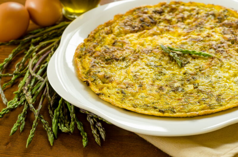 Salvatore's asparagus dish is a simple omelette. To make it, the asparagus is sautéed in olive oil in a wide pan, just long enough to keep it al dente. No blanching, no boiling. The aroma is preserved 100%! Pour the eggs, beaten with water or milk, over the top. Stop cooking when the eggs are not quite set. Sprinkle with a little Pecorino cheese. Done! (Of course, the omelette is seasoned with a little salt beforehand.) Salvatore prefers to serve it with ‘Pane Carasau’, but unfortunately this is difficult to find in our part of the world.